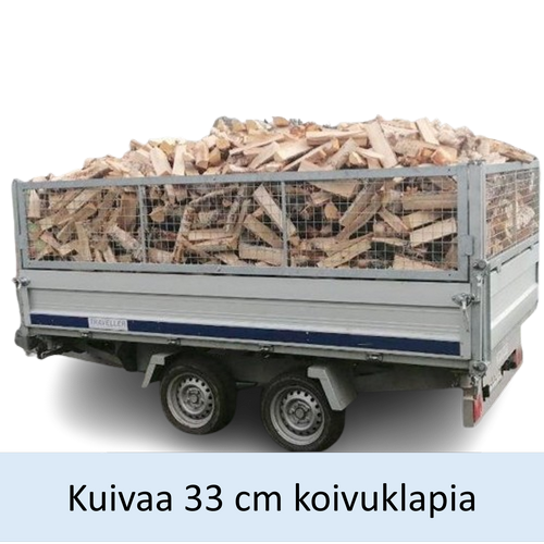 Täysi kuorma eli kuusi irtokuutiota kuivaa tasalaatuista suomalaista 33 cm koivuklapia. Kuumasti palavaa polttopuuta. Kuormassa on siis neljä isoa klapisäkillistä laadukasta, paikallisista metsistä taidolla jalostettua polttopuuta. Klapisäkit eivät kuulu kauppaan. Tästä ei polttopuu parane!